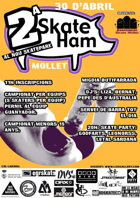 El proximo sábado, 30 de abril, tendrá lugar el 2ª Skate Ham en el nuevo skatepark de Mollet.