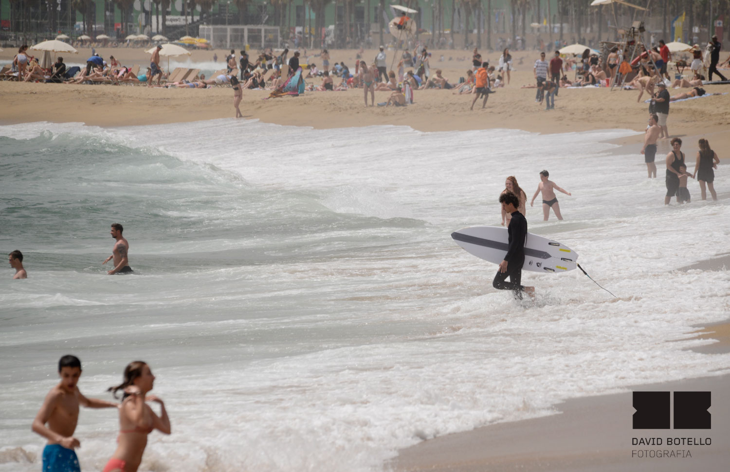 Viernes de olas veraniegas en la Barceloneta